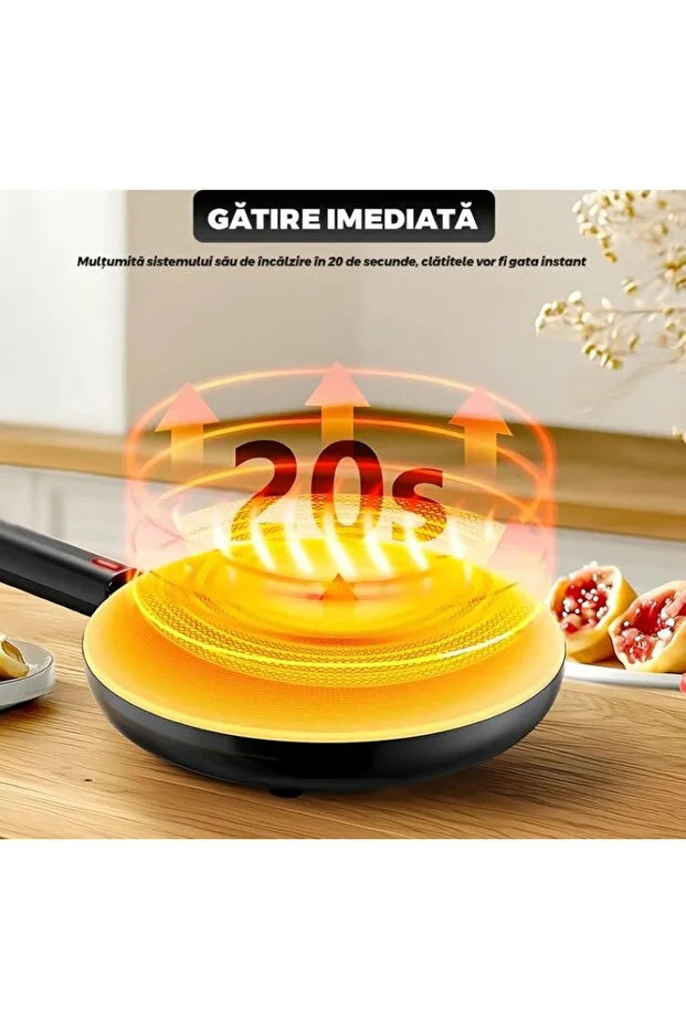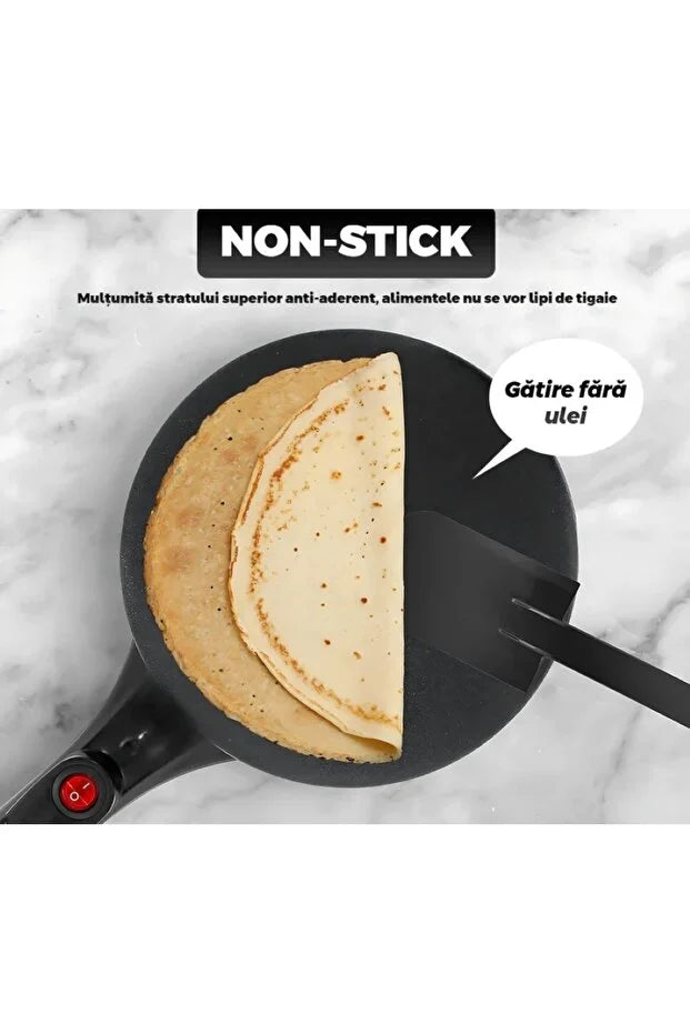 Prepari clătite perfecte în fiecare zi: tigaie electrică cu suprafață mare antiaderentă, funcționează pe 110-220 V, fără ulei și cu maner rezistent – ideală pentru bucătărie modernă.